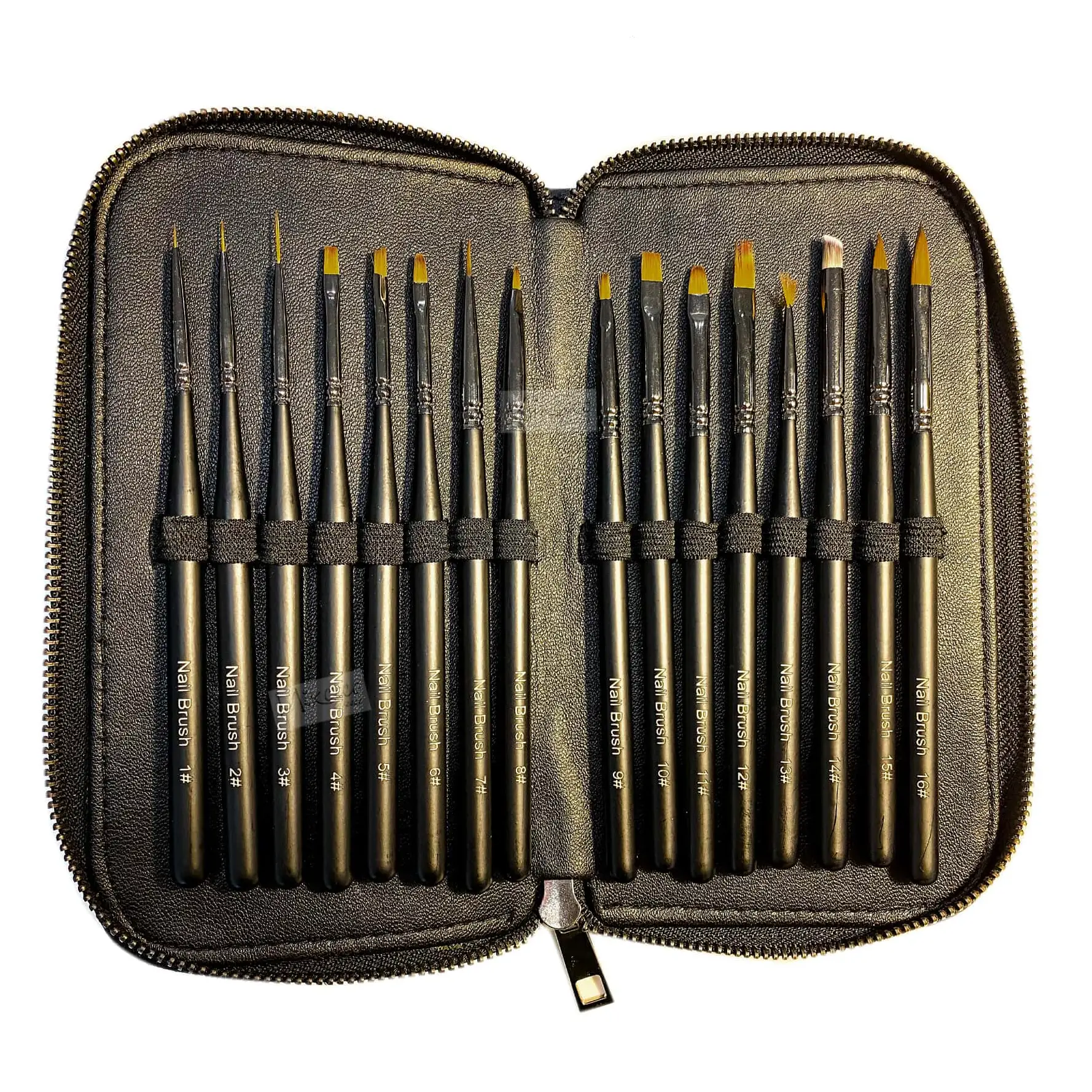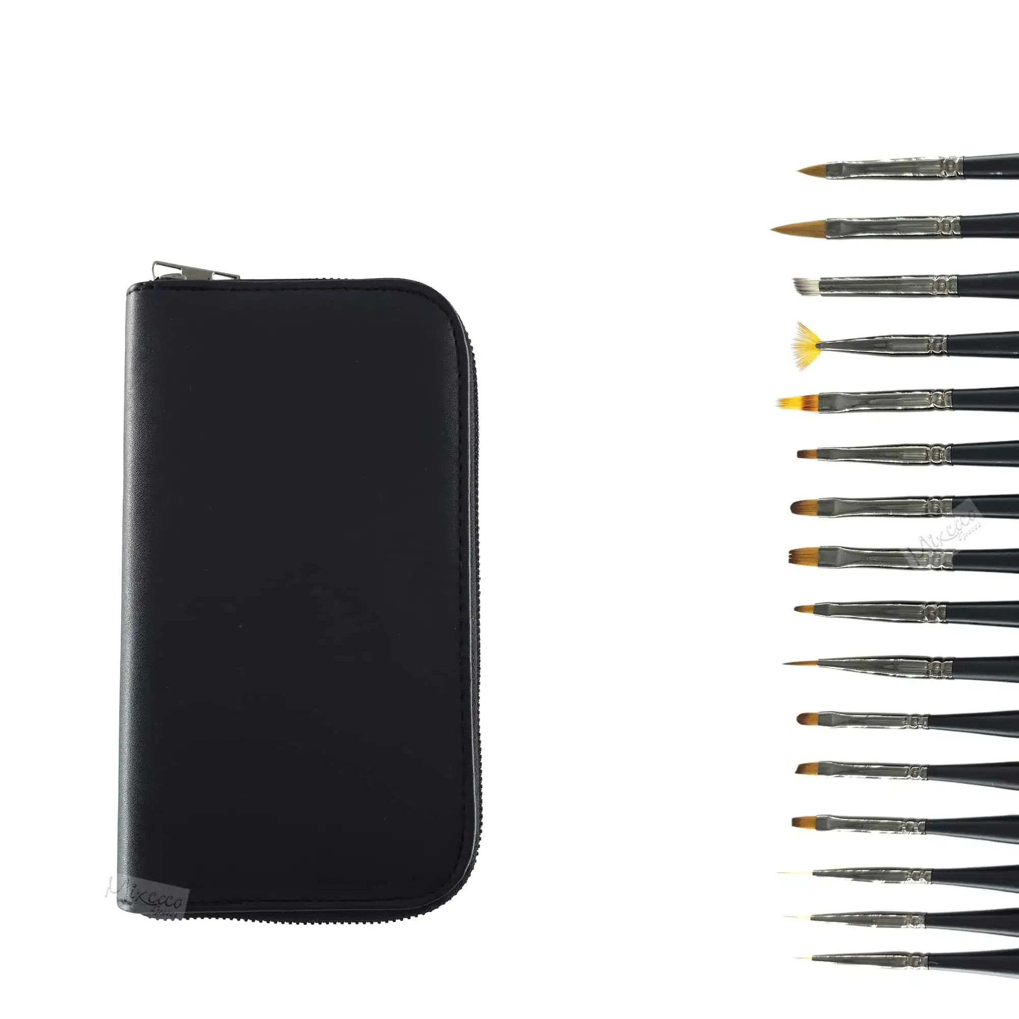 Ανθεκτική, κομψή κασετίνα από δερματίνη με φερμουάρ, εύκολη στη μεταφορά, με ειδικές υποδοχές που κρατούν τα πινέλα σας ασφαλή, προστατευμένα από τους εξωτερικούς παράγοντες και από την αλλοίωση του σχήματός τους.